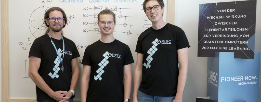 The QuditML project team from left to right: Dr. Michael Giretzlehner (Head of Research Unit Medical Informatics), Dominik Freinberger MSc (Researcher & Developer), DI Philipp Moser PhD (Senior Researcher & Developer), © RISC Software GmbH, Reprint free of charge