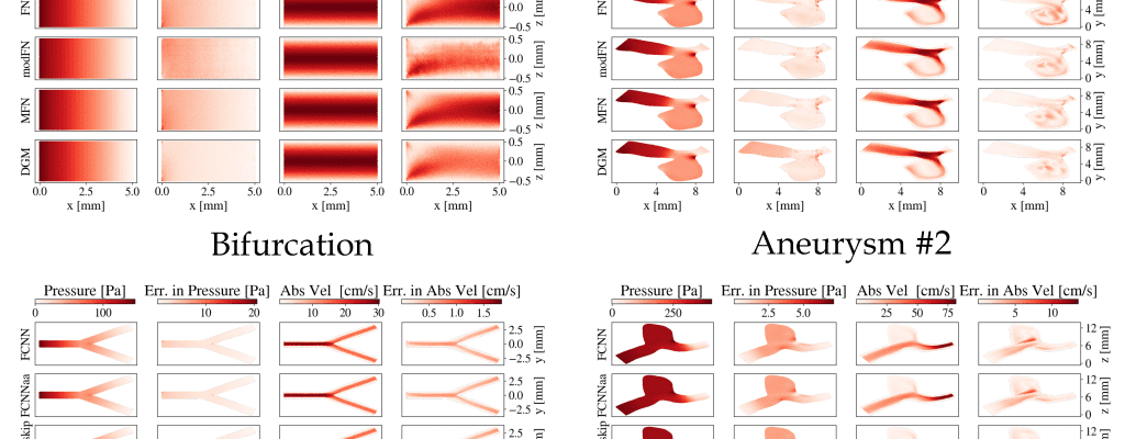 Im Vergleich zu konventionellen, numerischen Methoden der Strömungsmechanik bieten physics-informed neural networks, kurz PINNs (physikbasierte neuronale Netzwerke), Vorteile wie die Vermeidung von diskretisierten Simulationsgeometrien und die mögliche Integration von (Mess-)Daten in die Modellierung. Das Paper untersucht verschiedene Netzwerkarchitekturen bezüglich ihrer Performance und Genauigkeit im Vergleich zu numerischen Referenzsimulationen. Dabei wurden Blutflüsse sowohl durch einfache zylindrische Geometrien als auch komplexe Aneurysmen betrachtet. Es wurde festgestellt, dass fully-connected neural networks (vollständig verbundene Netzwerke) zwar eine attraktive Balance zwischen Trainingszeit und Genauigkeit bieten, jedoch komplexere Architekturen (wie z.B. die Deep Galerkin-Methode) genauere Ergebnisse erzielen können. Das Paper bietet damit eine quantitative Vergleichsübersicht über aktuell verfügbare Machine Learning-basierte Strömungsmodellierungen.